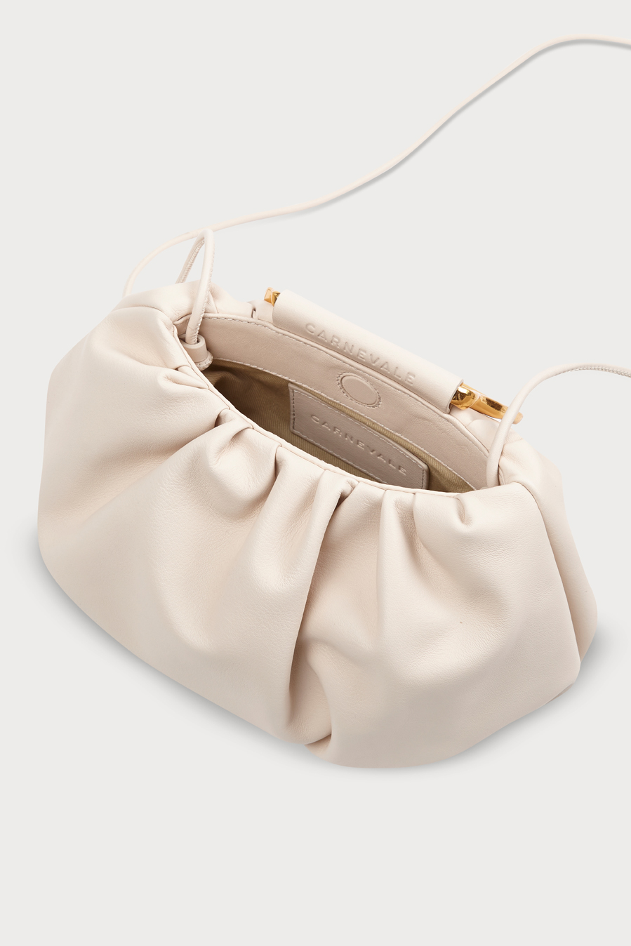 La borsa Victoria Cream in color crema / bianco, È un'esclusiva borsa gioiello in pelle, pensata per chi cerca raffinatezza e originalità. La sua originale maniglia asimmetrica placcata oro fornisce un tocco distintivo ed elegante, rendendolo un pezzo unico capace di elevare qualsiasi look. Questa borsa è realizzata in pelle di alta qualità, unendo l'eleganza, carattere e un'estetica contemporanea che trascende le tendenze. Il suo design accurato e la forma particolare lo rendono un accessorio unico ed essenziale.. Per una maggiore versatilità, include un sottile manico in pelle regolabile, che ne permette il trasporto come borsa a tracolla, adattandosi sia ai look da giorno che da sera, eventi o matrimoni, senza rinunciare alla raffinatezza.